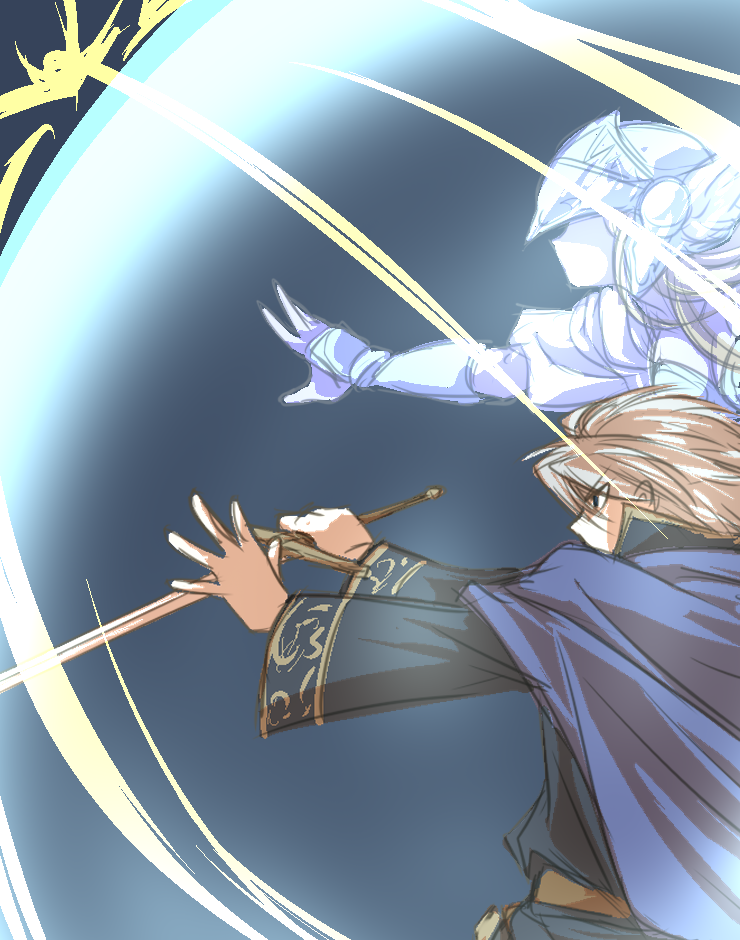この描きたいお話の主人公たちというのが元々、CardWirth(カードワース)というフリーゲームを遊ぶために描き下ろしたプレイヤーキャラクター達です。それも、Twitterでアマラさん(@tamazonnnoamara)に「たまにはオリジナル描けよ」と言われたのが切っ掛けという、かなり受動的な始まりでした。(何しろその一言があるまで CardWirthすら二次創作の版権キャラで遊んでいた位、ここ数年はずっと二次創作ばかりだったので…大好きなキャラクター達の原作では見られなかった物語を空想するのがとても楽しいので、こちらの活動と並行して続ける所存です)
